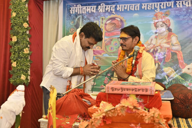 उपमुख्यमंत्री श्री विजय शर्मा कबीरधाम जिला के ग्राम मदनपुर में आयोजित भागवत गीता महापुराण में हुए शामिल