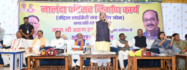 उप मुख्यमंत्री श्री अरुण साव ने नालंदा परिसर के निर्माण के लिए भूमिपूजन करने के बाद कांकेरवासियों को संबोधित करते हुए कहा कि प्रदेश के सभी नगरीय निकायों में लगातार विकास कार्यों की स्वीकृति दी जा रही है। जनसुविधाओं का विस्तार किया जा रहा है। उन्होंने कहा कि प्रदेश के नगरीय निकायों को स्वच्छता में रैंकिंग में सात अवॉर्ड प्राप्त हो चुके हैं जो नागरिकों की जागरूकता और नगरीय प्रशासन विभाग की प्रतिबद्धता को प्रदर्शित करते हैं।