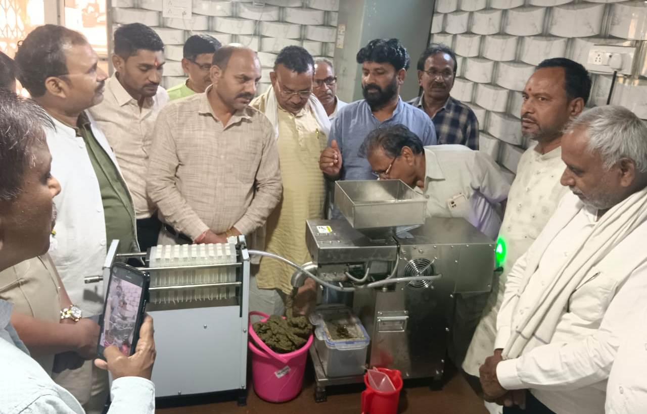 छत्तीसगढ़ तेलघानी विकास बोर्ड के अध्यक्ष श्री जितेन्द्र साहू ने आज रायपुर स्थित साहू समाज के कार्यालय कृष्णाधाम परिसर में स्थापित तेलघानी मशीन का निरीक्षण किया। इस अवसर पर उन्होंने मशीन की तकनीकी कार्यप्रणाली, तिलहन प्रसंस्करण की प्रक्रिया तथा विपणन (मार्केटिंग) के तौर-तरीकों को गंभीरतापूर्वक समझा। निरीक्षण के पश्चात श्री साहू ने इसे किसानों और बेरोजगार युवाओं के लिए एक अभिनव रोजगार माध्यम बताया।