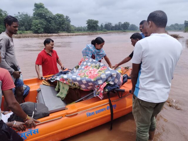 बाढ़ एवं आपदा के दौरान जिले में नगर सेना की पूरी टीम तत्परतापूर्वक जान माल की रक्षा के सक्रिय रहते है। किसी भी प्रकार के आपदा आने पर बचाव दल मौके पर पहुंचकर अपनी जिम्मेदारी बखूबी निभाते है। स्वास्थ्य विभाग की सूचना पर गर्भवती महिला श्रीमती चिंता वडे ग्राम चोकन पाल पंचायत गंगालूर को प्रसव पीड़ा होने पर प्रसव के लिए गंगालूर स्वास्थ केंद्र लाया जाना था। लेकिन कमकनार घाट में मिंगाचल नदी का जलस्तर बढ़ जाने से नगर सेना के रेस्क्यू टीम को रेड्डी भेजा गया। जहां गर्भवती महिला को नदी पार कराया गया और महिला को स्वास्थ केंद्र गंगालूर ले जाया गया।