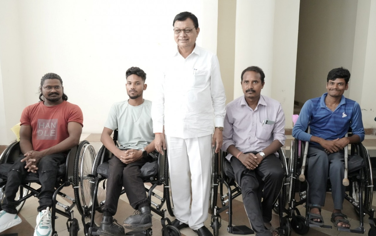 जिले के 15 दिव्यांग खिलाड़ियों को उनके निरंतर खेल अभ्यास एवं खेल प्रदर्शन को देखते हुए कलेक्टर श्री अजीत वसंत ने खेल एवं युवा कल्याण विभाग को निर्देशित किया था कि खिलाड़ियों को आगामी विभिन्न खेल प्रतिस्पर्धाओं में श्रेष्ठ प्रदर्शन करने के लिए उन्हें व्हील चेयर उपलब्ध कराई जाए। आज खेल एवं युवा कल्याण विभाग द्वारा जिला खनिज न्यास मद से खिलाड़ियों को व्हील चेयर प्रदान की गई। व्हील चेयर पाकर खिलाड़ियों ने खुशी जाहिर की। उल्लेखनीय है कि इन दिव्यांग खिलाड़ियों में से 03 खिलाड़ी राष्ट्रीय स्तर के क्रिकेट प्रतिस्पर्धा में भाग ले चुके हैं। लक्की सोनी दिव्यांग आईपीएल क्रिकेट प्रतिस्पर्धा में उनका प्रदर्शन कर चुके हैं। व्हील चेयर पाकर खिलाड़ियों ने जनप्रतिनिधि एवं अधिकारियों को धन्यवाद ज्ञापित किया। इस अवसर पर रामपुर विधायक श्री फूल सिंह राठिया, कटघोरा विधायक श्री प्रेमचंद पटेल, पाली-तानाखार विधायक श्री तुलेश्वर सिंह मरकाम, कलेक्टर श्री अजीत वसंत उपस्थित थे।