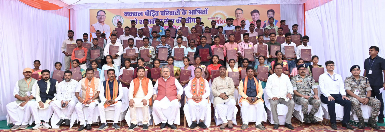 मुख्यमंत्री श्री विष्णु देव साय आज बीजापुर जिला मुख्यालय के मिनी स्टेडियम में आयोजित नक्सल पुनर्वास नीति के अंतर्गत नक्सल पीड़ित परिवार के आश्रितों को शासकीय नियुक्ति आदेश और तेंदूपत्ता बोनस वितरण कार्यक्रम में शामिल हुए। इस मौके पर उन्होंने 263 करोड़ 66 लाख से अधिक की लागत से 209 के विकास कार्यों का लोकार्पण एवं भूमिपूजन किया। इनमें 228 करोड़ 53 लाख के 145 विकास कार्यों का भूमि पूजन और 35 करोड़ 13 लाख के 64 विकास कार्य का लोकार्पण शामिल है।