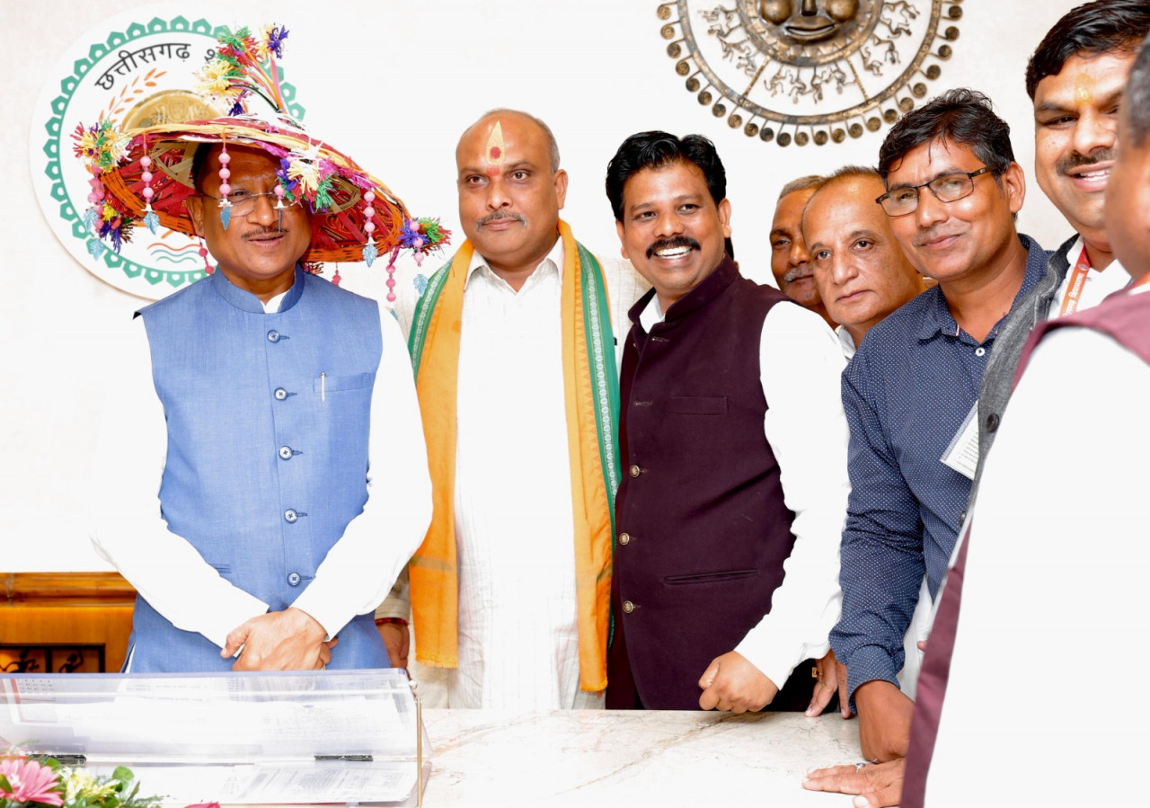 मुख्यमंत्री श्री विष्णुदेव साय से आज यहां विधानसभा परिसर स्थित उनके कार्यालय कक्ष में दुर्ग विधायक श्री ललित चन्द्राकर के नेतृत्व में आये शास्त्री नवयुवक मंडल के प्रतिनिधिमंडल ने सौजन्य मुलाकात की। प्रतिनिधि मंडल ने मुख्यमंत्री श्री साय को पारम्परिक खुमरी पहना कर उनका अभिवादन किया। उन्होंने मुख्यमंत्री को दुर्ग जिले के मड़ियापार में आगामी 2 सितम्बर को आयोजित होने वाले पोला महोत्सव के 65वें आयोजन में शामिल होने का आमंत्रण दिया।