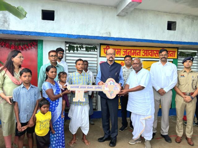 राज्यपाल श्री रमेन डेका ने आज बलरामपुर-रामानुजगंज जिले के विकासखंड राजपुर के पहाड़ी कोरवा ग्राम घटगांव में प्रधानमंत्री जनमन आवास योजना के हितग्राही श्री रामकुमार के घर पहुँचकर उन्हें उनके नए आवास की चाबी सौंपी। राज्यपाल ने फीता काटकर नवनिर्मित आवास में गृह प्रवेश कराया। उन्होंने परिवार के सदस्यों को उनके नए आवास एवं उज्जवल भविष्य के लिए बधाई एवं शुभकामनाएं दीं। राज्यपाल श्री रमेन डेका ने हितग्राही श्री रामकुमार और उनके परिवार से आत्मीयता से बातचीत की। उन्होंने परिवार की आजीविका, बच्चों की पढ़ाई और योजना से हुए बदलावों के बारे में जानकारी ली। इस दौरान रामकुमार ने बताया कि पहले वे कच्चे घर में डर में रहते थे लेकिन अब योजना अंतर्गत मिले आवास से अपने पक्के घर में सुकून से बेफिक्र होकर सो पाएंगे। राज्यपाल श्री रमेन डेका ने पहाड़ी कोरवा परिवार से विदा लेते समय उनको उपहार भेंट किया और आगे बेहतर जीवन के लिए शुभकामनाएं दी।