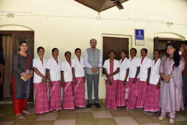 नगरी विकासखंड के लीफ आर्टिस्ट श्री विकास शांडिल्य ने पीपल के पत्ते पर उकेरी गई शेर की कलात्मक आकृति राज्यपाल श्री डेका को भेंट की। राज्यपाल ने उनकी कला की प्रशंसा करते हुए आकृतियों के निर्माण में लगने वाले समय और उनकी कीमत के बारे में जानकारी ली। उन्होंने विकास को पत्ते पर और भी कलात्मक आकृति तैयार करने हेतु प्रोत्साहित किया एवं उनकी कृतियों को खरीदने की इच्छा भी व्यक्त की। राज्यपाल श्री डेका ने महिला स्व-सहायता समूहों की दीदियों के साथ आत्मीयतापूर्ण संवाद करते हुए समूहों द्वारा किए जा रहे कार्यों की सराहना की और उनके साथ स्मृति स्वरूप छायाचित्र भी लिए।