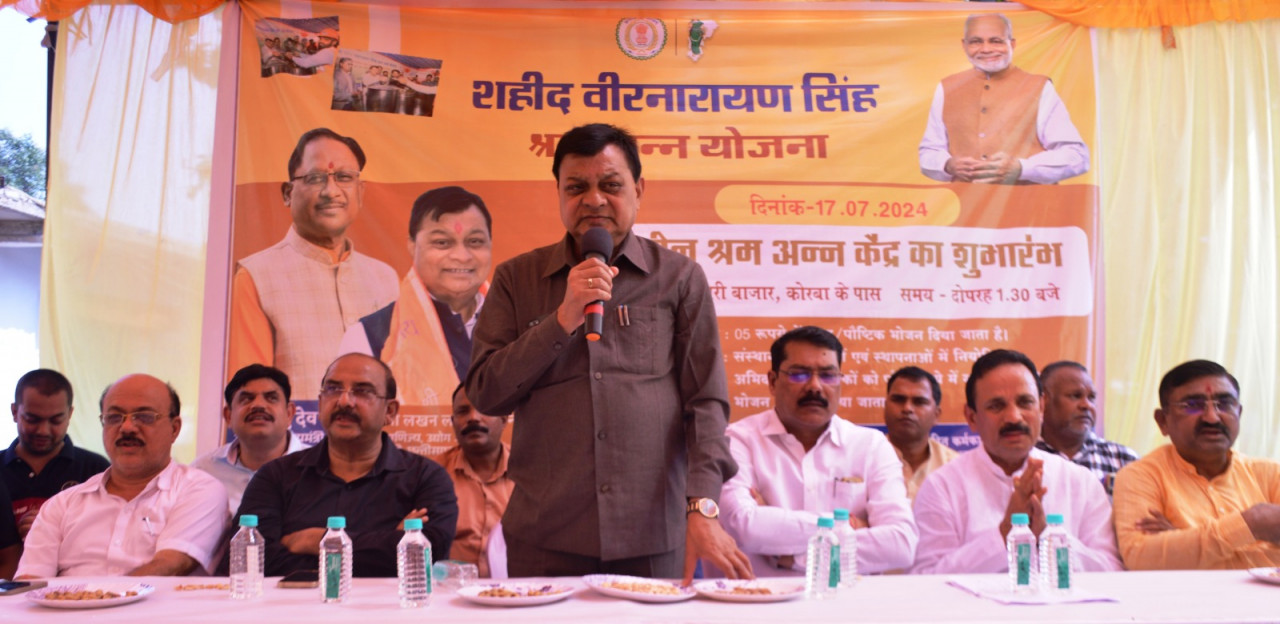 श्रम, उद्योग एवं वाणिज्य मंत्री श्री लखन लाल देवांगन ने आज कोरबा जिले के बुधवारी बजार में शहीद वीर नारायणसिंह श्रम अन्न योजना अंतर्गत निर्माण, संगठित एवं असंगठित वर्ग के श्रमिकों के लिए 05 रूपए में भरपेट भोजन की व्यवस्था हेतु दाल-भात केंद्र का शुभारंभ किया। यह जिले का दूसरा दाल भात केंद्र है। इस दौरान उन्होंने अतिथियों के साथ स्वयं भी श्रमिकों के बीच जाकर भोजन किया और श्रमिकों से अपील किया कि वे इस दाल-भात केंद्र में आकर भोजन अवश्य करें। श्रम मंत्री ने इस अवसर पर विभाग अंतर्गत संचालित योजनाओं की जानकारी देते हुए कहा कि श्रम विभाग से जुड़े कुल तीन मंडल अंतर्गत 72 योजनाएं संचालित है। प्रधानमंत्री श्री नरेन्द्र मोदी ने सभी योजनाओं में हितग्राहियों को सामग्री प्रदान करने की बजाय सीधे उनके खाते में राशि देने की पहल किया है। इससे हितग्राही को सीधा लाभ पहुंचता है। उन्होंने कहा मुख्यमंत्री श्री विष्णुदेव साय के द्वारा गरीबों के कल्याण के लिए कार्य किया जा रहा है। श्रम मंत्री श्री देवांगन ने आगे कहा कि श्रम विभाग की योजना श्रमिकों के लिए है। छत्तीसगढ़ का कोई भी श्रमिक योजनाओं से वंचित न रहे, उन्हें लाभ जरूर मिले। श्रम मंत्री होने के नाते उनकी भी कोशिश है कि कोरबा जिले के सभी श्रमिक योजनाओं का लाभ उठाएं।