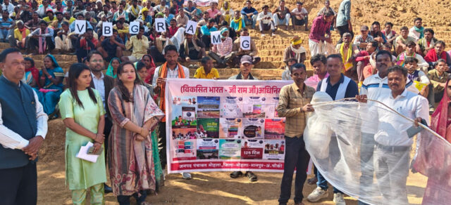 आदिवासी बहुल एवं कृषि आधारित आजीविका वाले मोहला-मानपुर-अम्बागढ़ चौकी जिले की ग्राम पंचायत करमरी में वीबी-जी राम जी (विकसित भारत ग्राम गारंटी) योजना के अंतर्गत आज जागरूकता कार्यक्रम का आयोजन किया गया। कार्यक्रम में बड़ी संख्या में ग्रामीणों ने भाग लिया और विकासोन्मुख नारों के साथ योजना का स्वागत किया। ग्रामीणों द्वारा मानव श्रृंखला बनाकर “आत्मनिर्भर गांव-विकसित भारत” का संदेश भी दिया गया।
