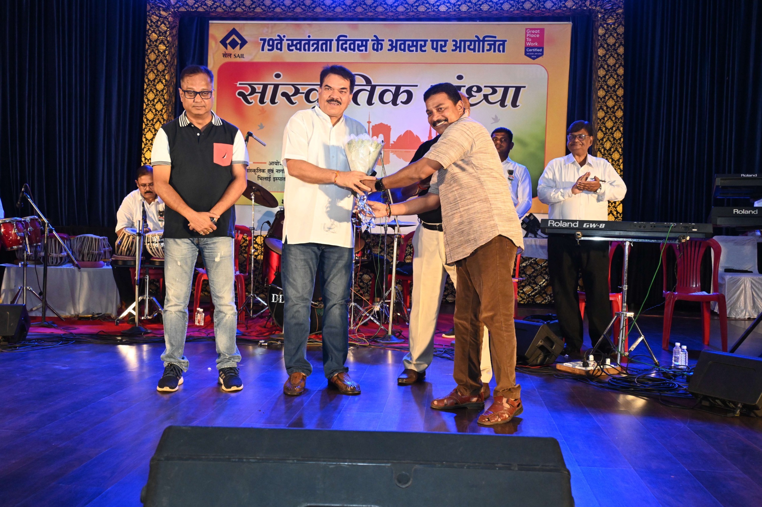 स्वतंत्रता दिवस समारोह की श्रृंखला को सांस्कृतिक रंग प्रदान करते हुए सेल-भिलाई इस्पात संयंत्र के क्रीड़ा, सांस्कृतिक एवं नागरिक सुविधाएं विभाग द्वारा महात्मा गाँधी कला मंदिर में एक मनमोहक संगीत संध्या का आयोजन किया गया। कार्यक्रम में कार्यपालक निदेशक (माइन्स) श्री बिपिन कुमार गिरी, कार्यकारी कार्यपालक निदेशक (मानव संसाधन) श्री संदीप माथुर तथा महाप्रबंधक (मानव संसाधन, ईडी सचिवालय) श्री सौमिक डे ने विशेष अतिथि के रूप में अपनी गरिमामयी उपस्थिति प्रदान की।
